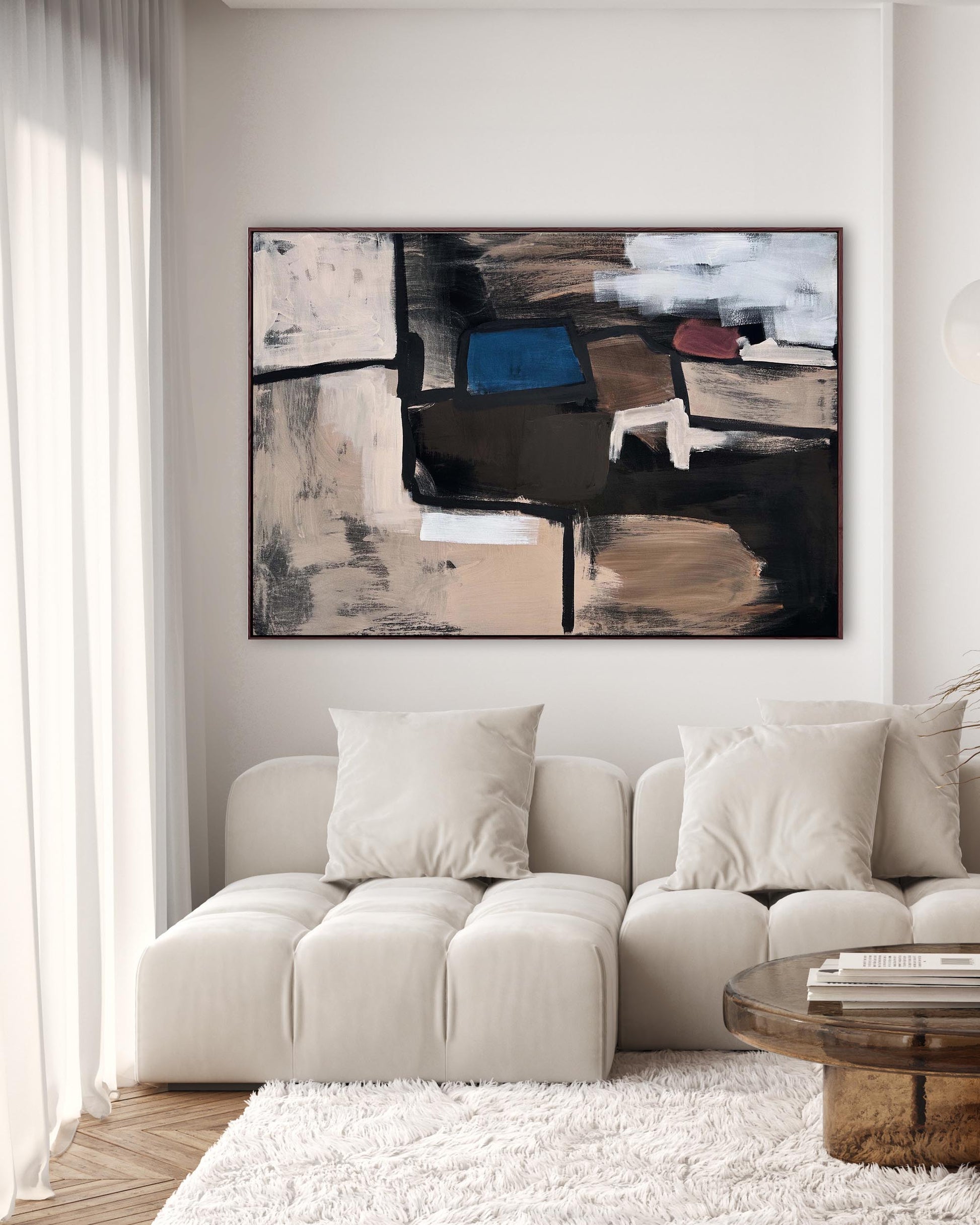 Add a striking focal point to your space with "Time And Time Again," a large, original abstract geometric painting by Omar Obaid. Measuring 150x100cm, this one-of-a-kind artwork combines bold shapes and precise composition to create a captivating visual experience. Perfect for collectors who appreciate unique contemporary art that commands attention.