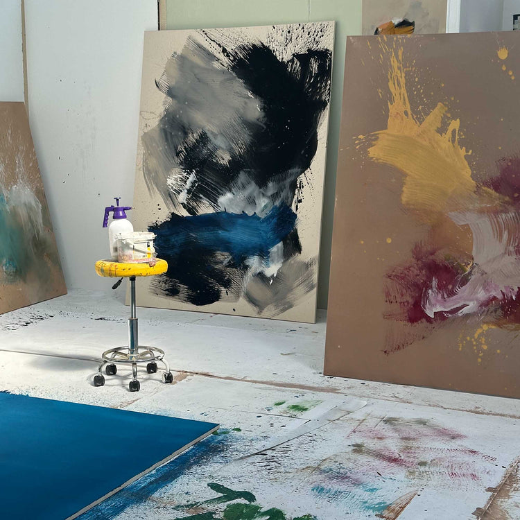 Discover the original collection of affordable abstract paintings, hand-painted by Omar which have derived from his imagination using his unique mark-making techniques.