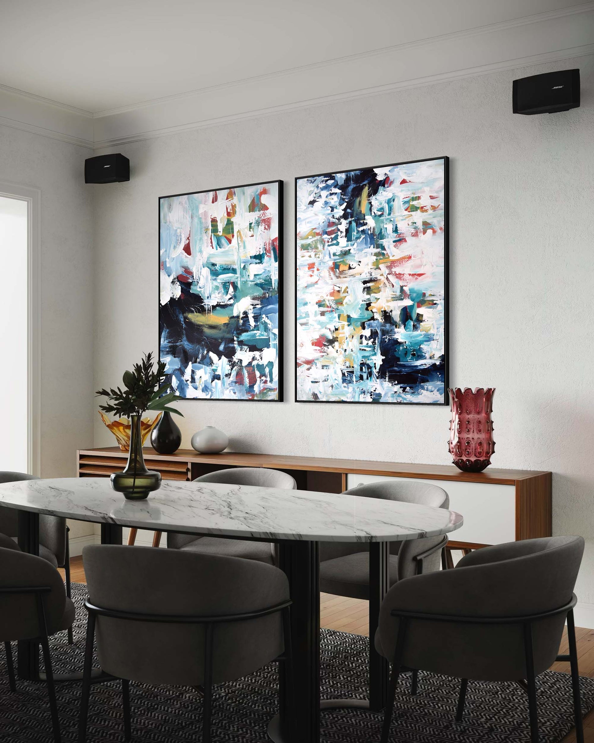 Elevate your space with this striking canvas set of two abstract prints, each piece inspired by an original painting and rendered with captivating texture effects. The Dunes collection captures the fluid movement and depth of natural landscapes through bold, contemporary abstraction—perfect for creating visual interest across a feature wall or gallery arrangement. Crafted to gallery standards, these canvases bring sophisticated artistic character to modern interiors, transforming any room into a curated sanctuary of colour and form.