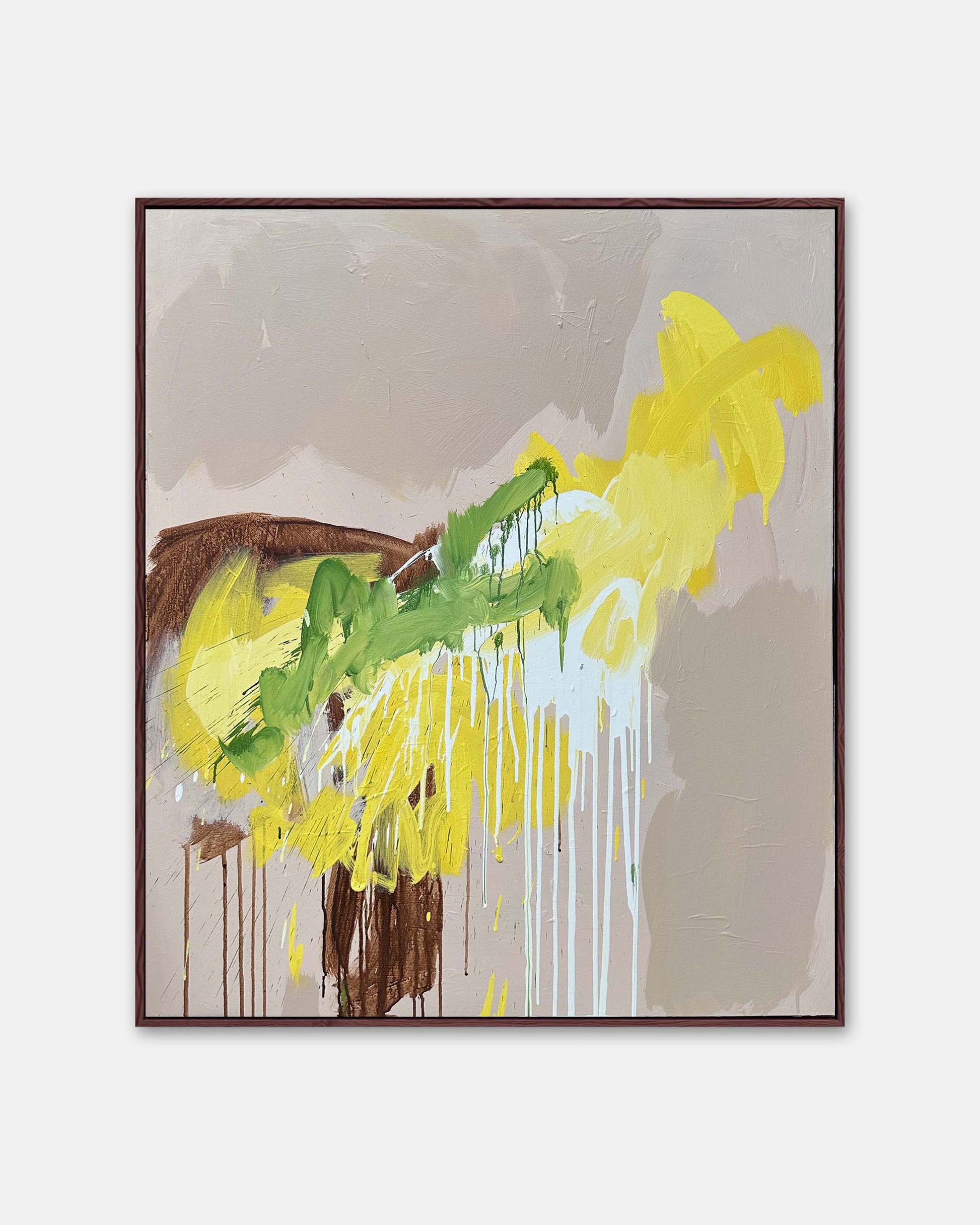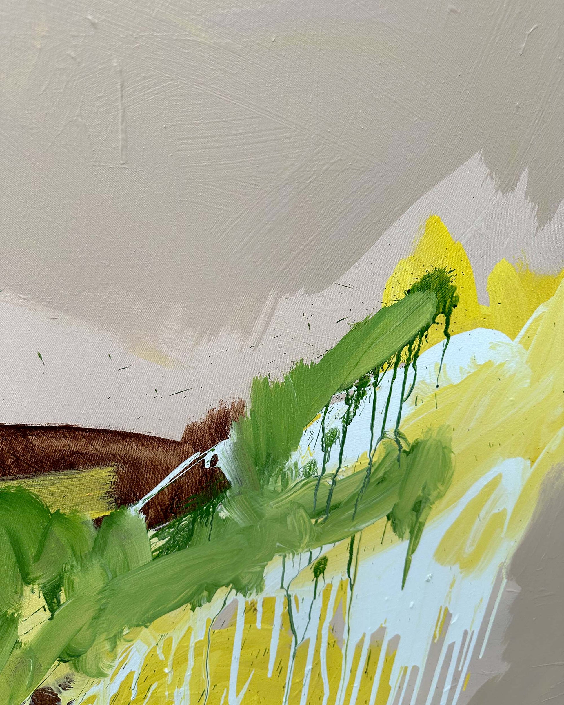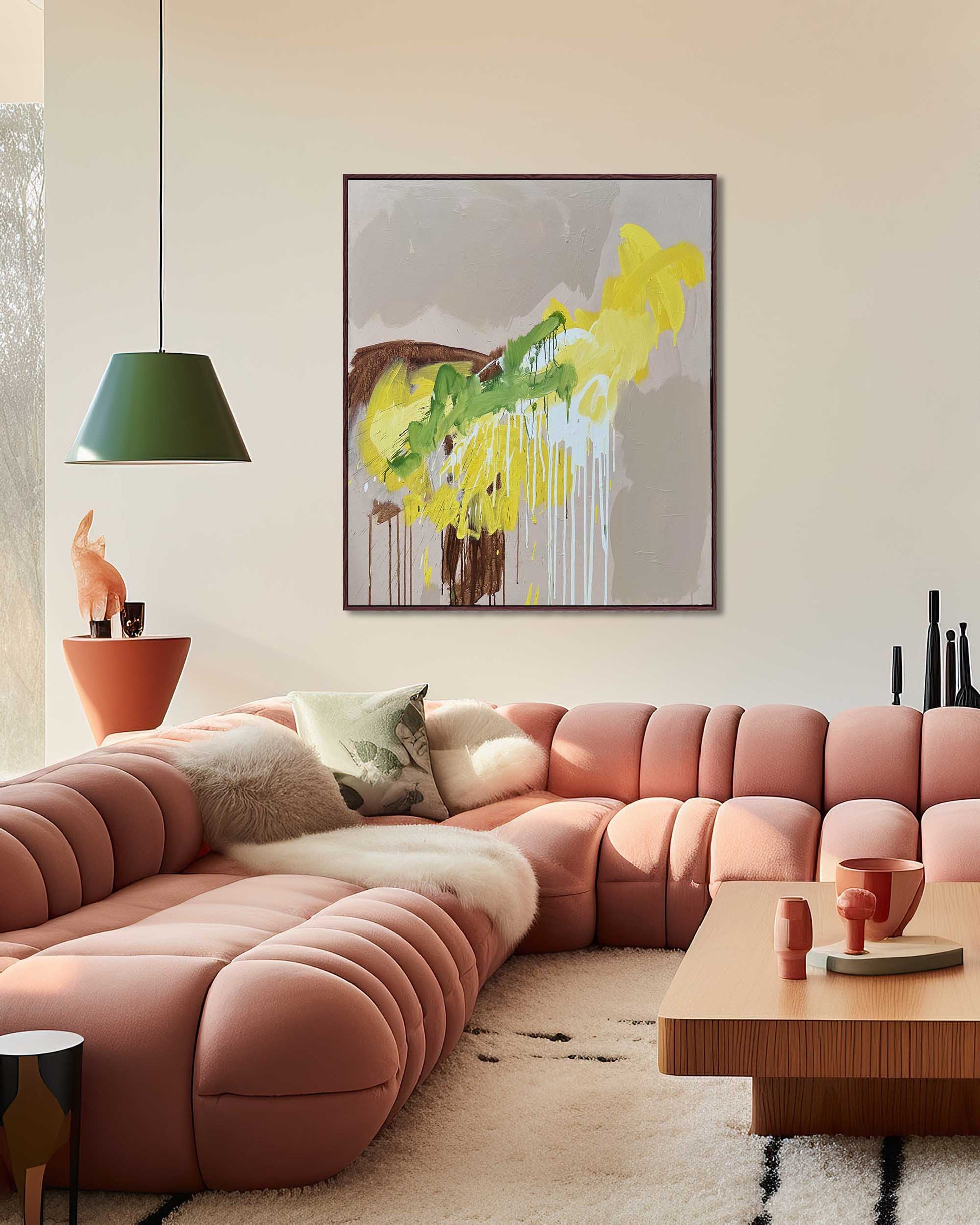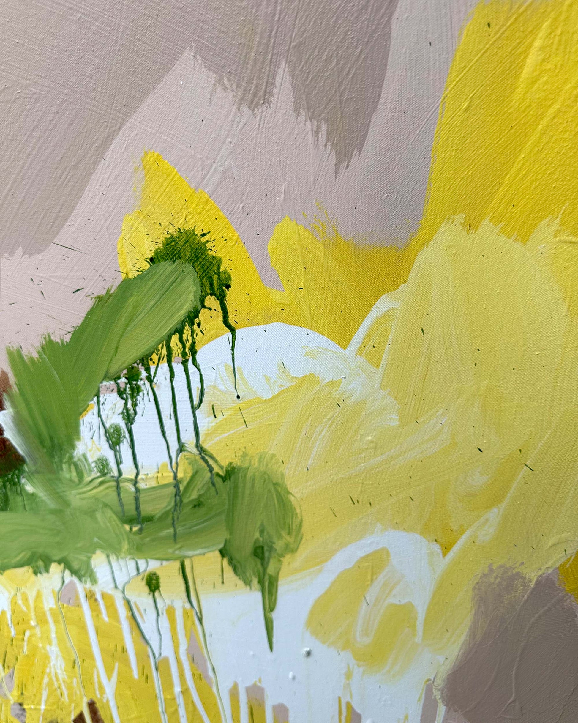 Living In A Fairytale is an original contemporary painting by Omar Obaid, featuring an abstract composition in yellow, green, and brown tones set against a subtle beige backdrop. This 120x100cm artwork showcases the artist’s refined approach to color and form, making it a compelling addition to any discerning fine art collection.