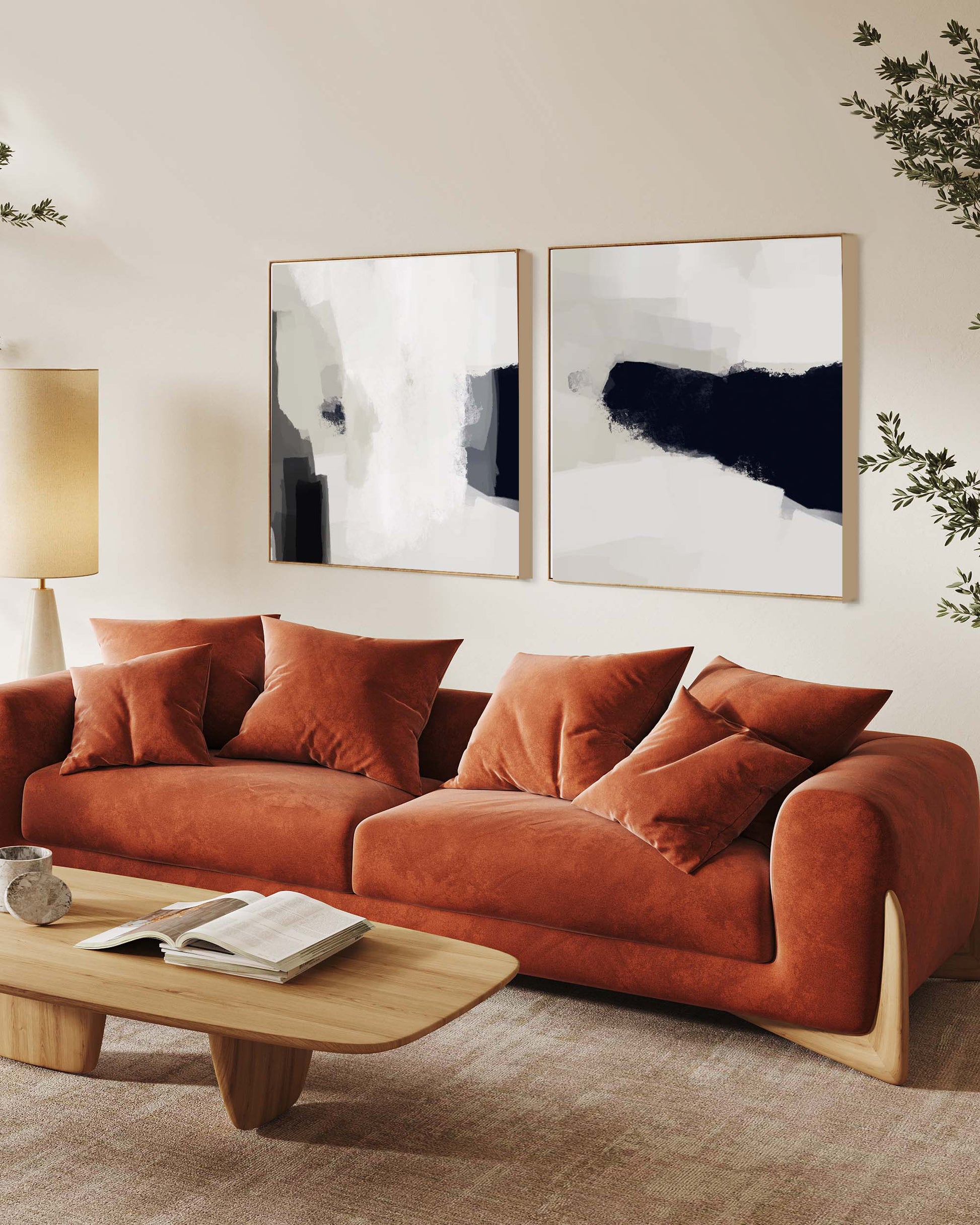 Decorate your walls with beautiful modern art. This fine art print pair on canvas comes ready to hang, with an additional outer floating frame included in a colour of your choice.