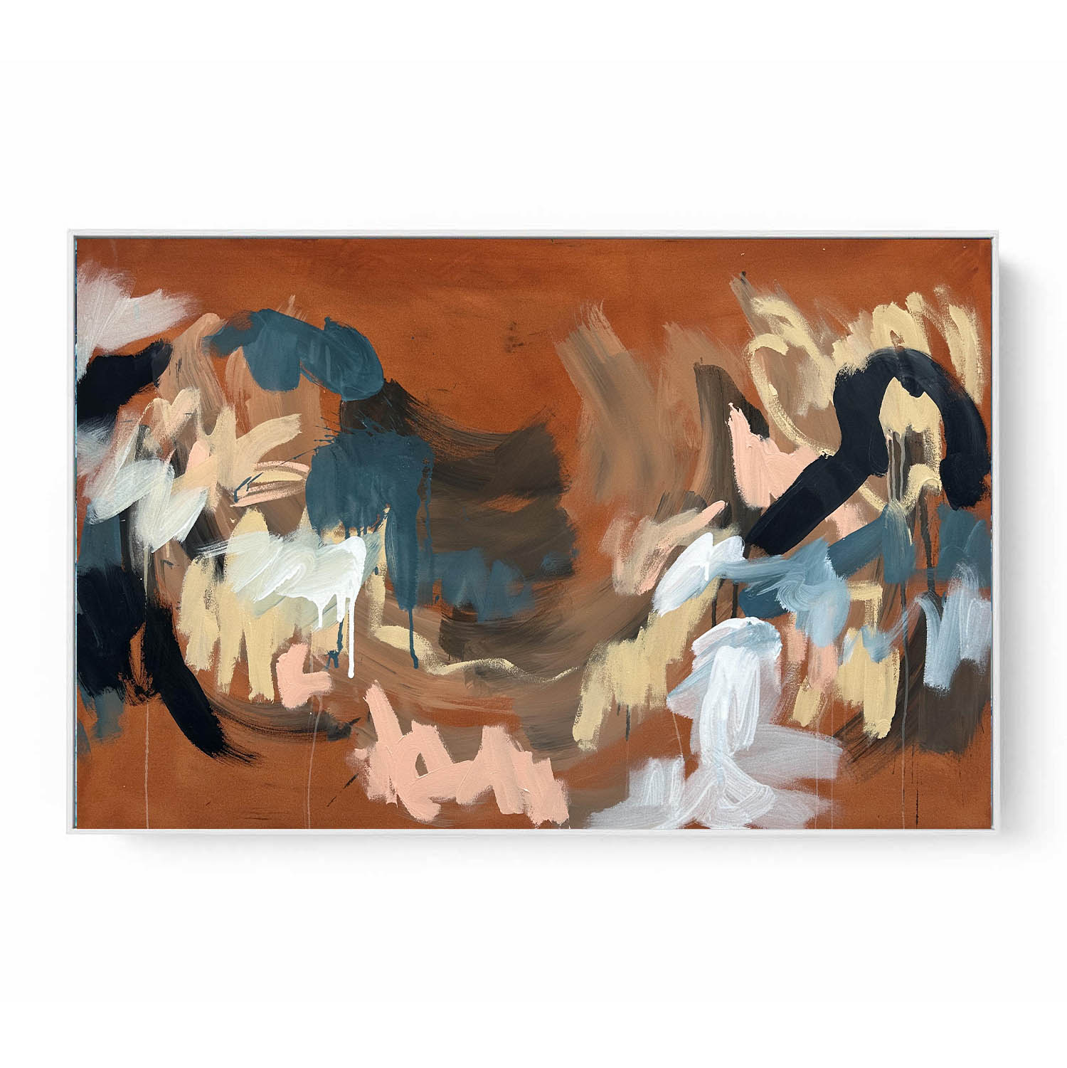 The original artwork is stretched on a wooden frame and it comes ready to hang with your choice of frame colour.