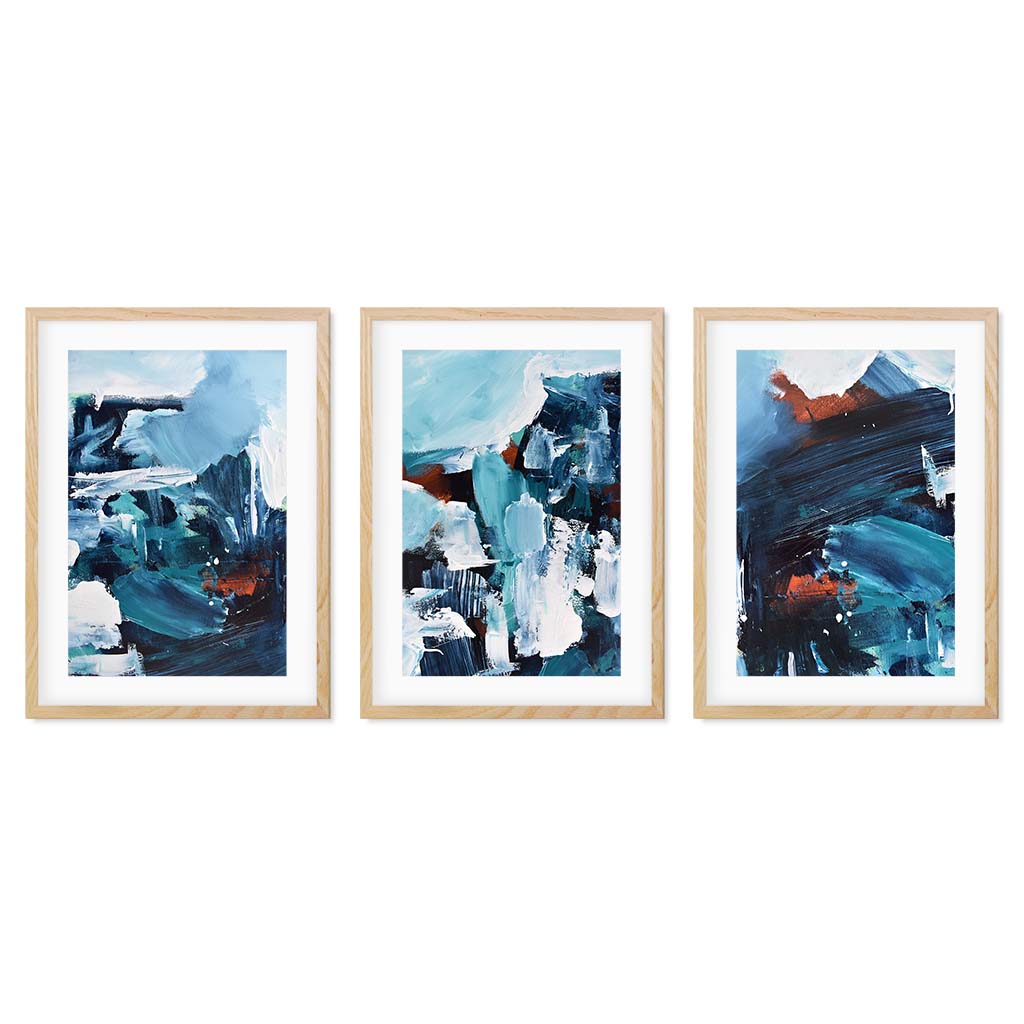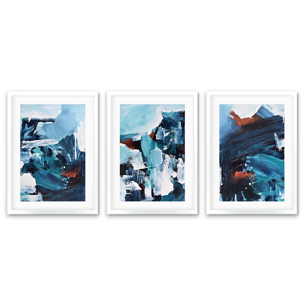 Feel the ocean breeze as it flows through the waves. Experience the true beauty of the coast in this striking abstract expressionist seascape print set.