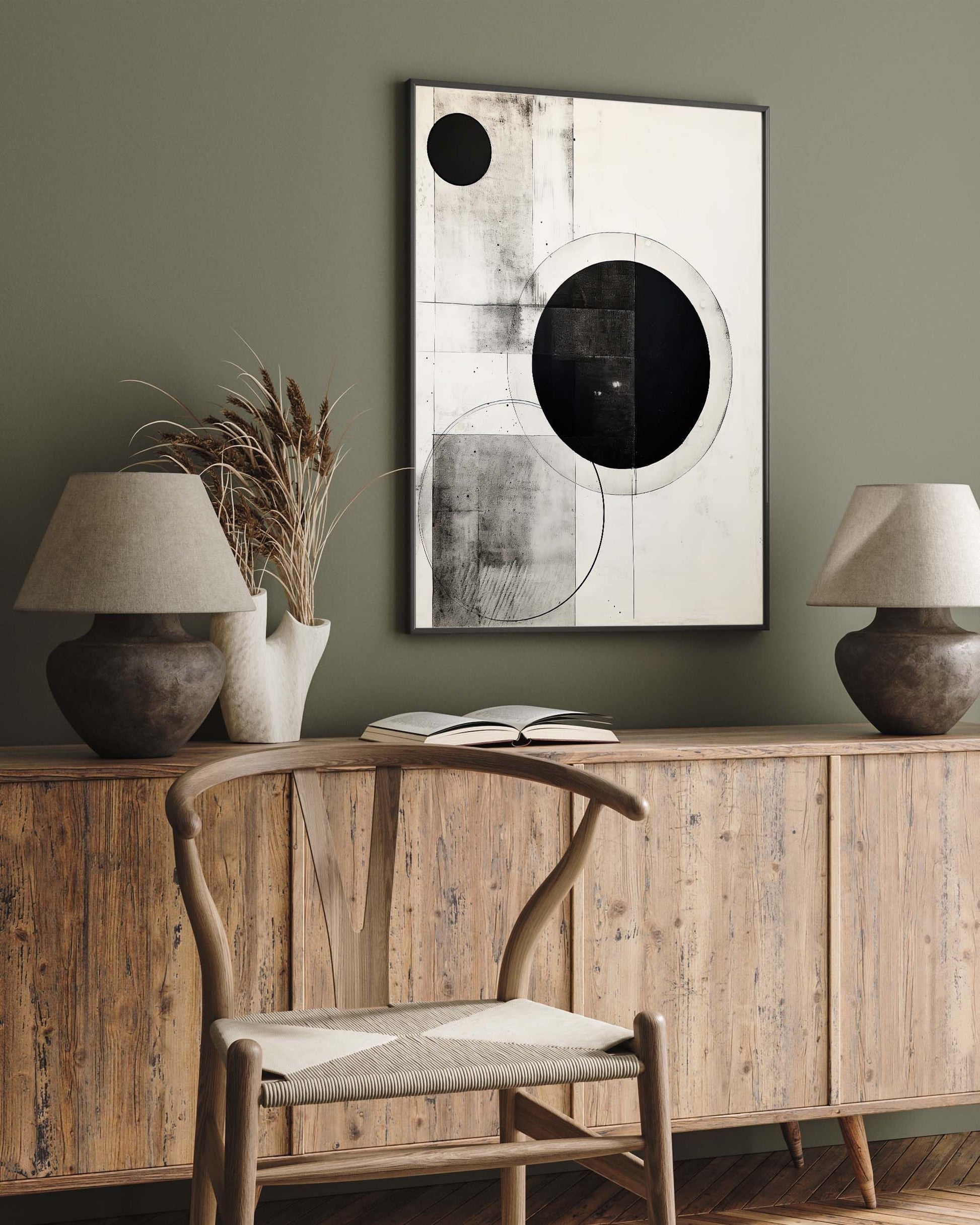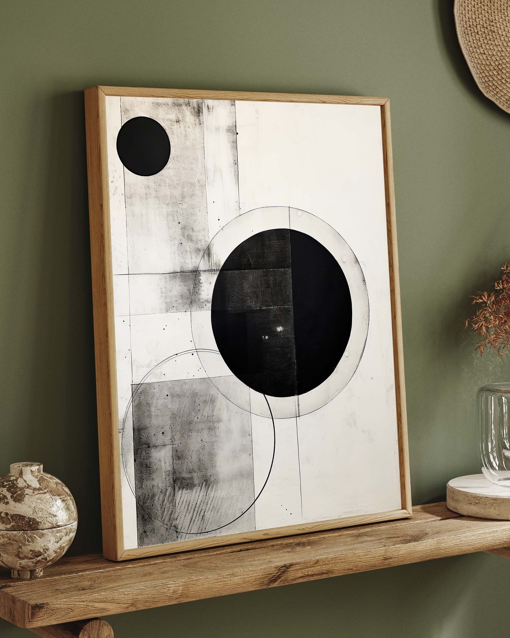 The Constructive Drawings Art Print features a bold abstract geometric design in striking black and white. This modern artwork adds sharp contrast and dynamic structure to any space, perfect for enhancing your décor with contemporary elegance and visual impact.