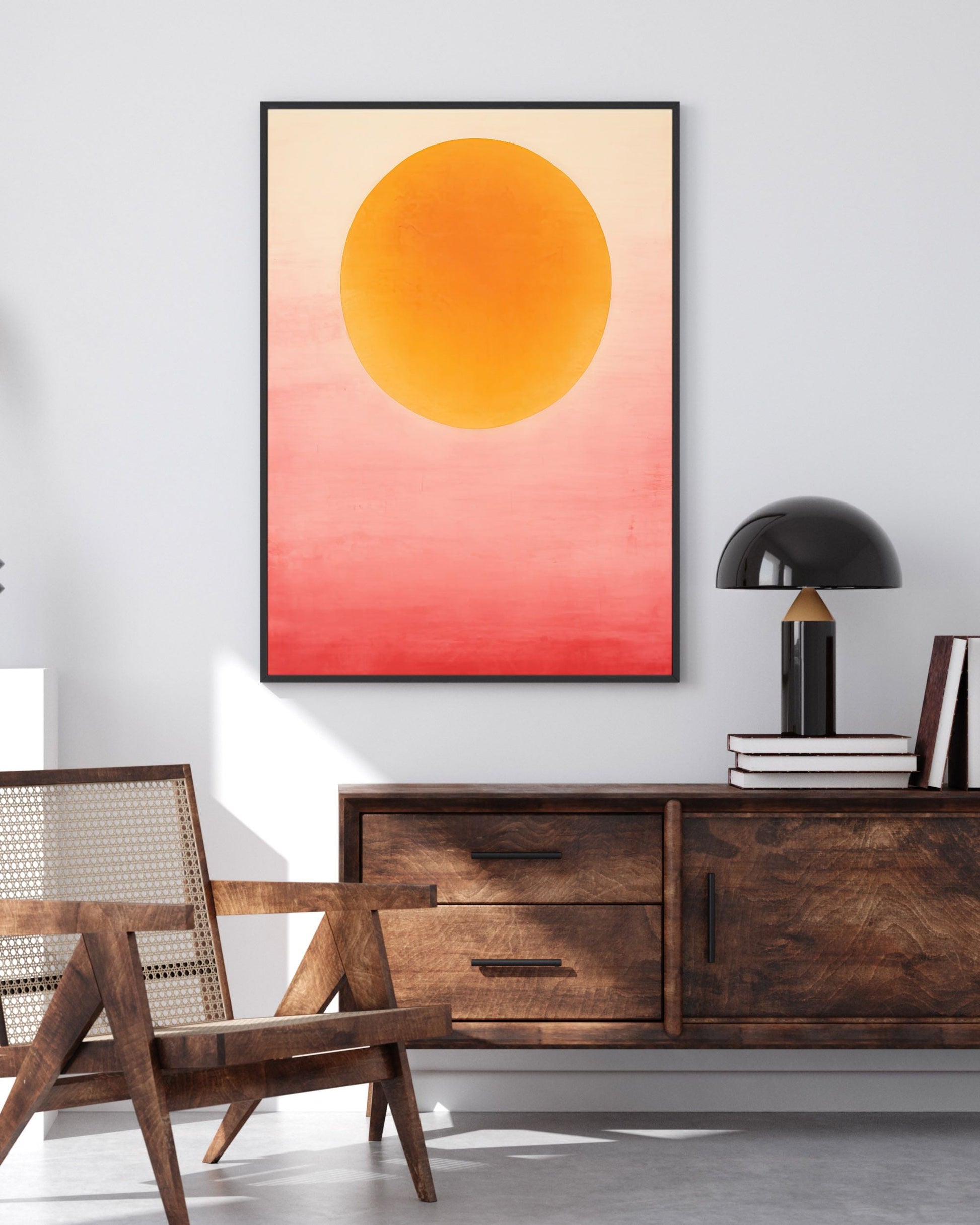 The Hazy Sunflower Art Print features a minimal and contemporary design of a red and orange gradient circle. This vibrant artwork adds warmth and modern elegance to any space, perfect for enhancing your décor with bold simplicity and radiant colour.