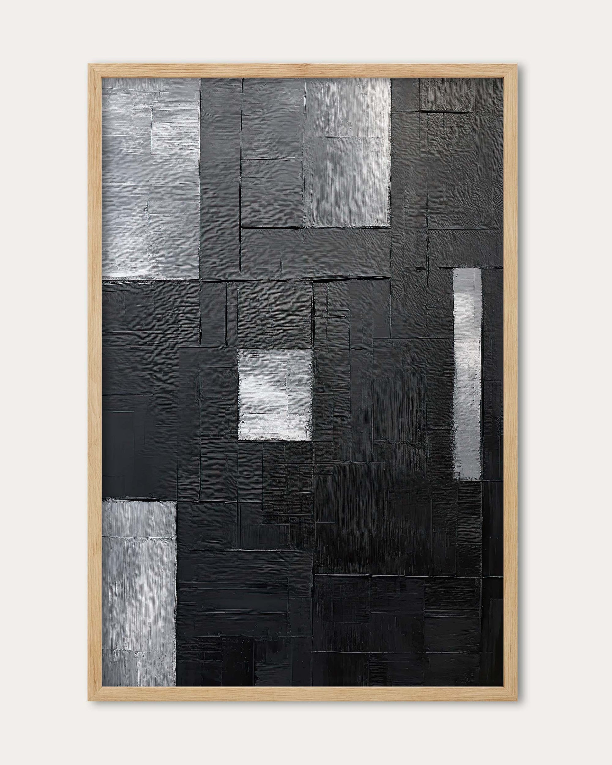 The Mono Abstraction II Art Print is a large canvas featuring a modern black and white geometric abstract design. This striking monochrome artwork adds bold contrast and contemporary sophistication to any space, perfect for making a powerful statement in your décor.