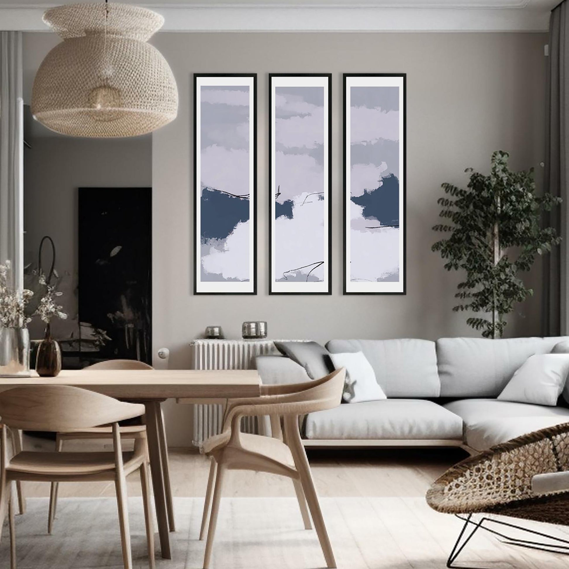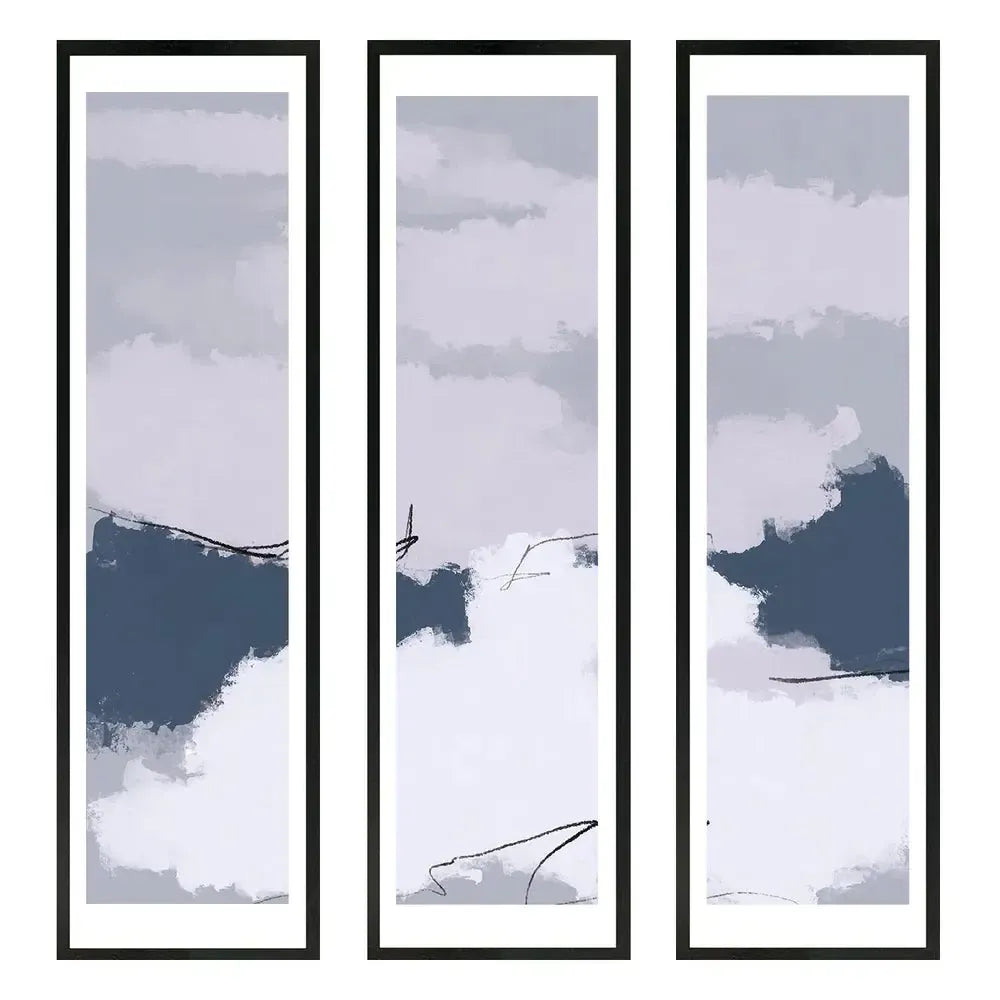 This luxuriously framed artwork set captures the beauty of Cornwall's vast and powerful ocean as manifested in the abstract landscape. Stunningly framed with real glass, the set of three pieces adds a touch of elegance to any home. A thoughtfully crafted tribute to the raw beauty of the ocean, this set will lend your space a touch of sophistication.
