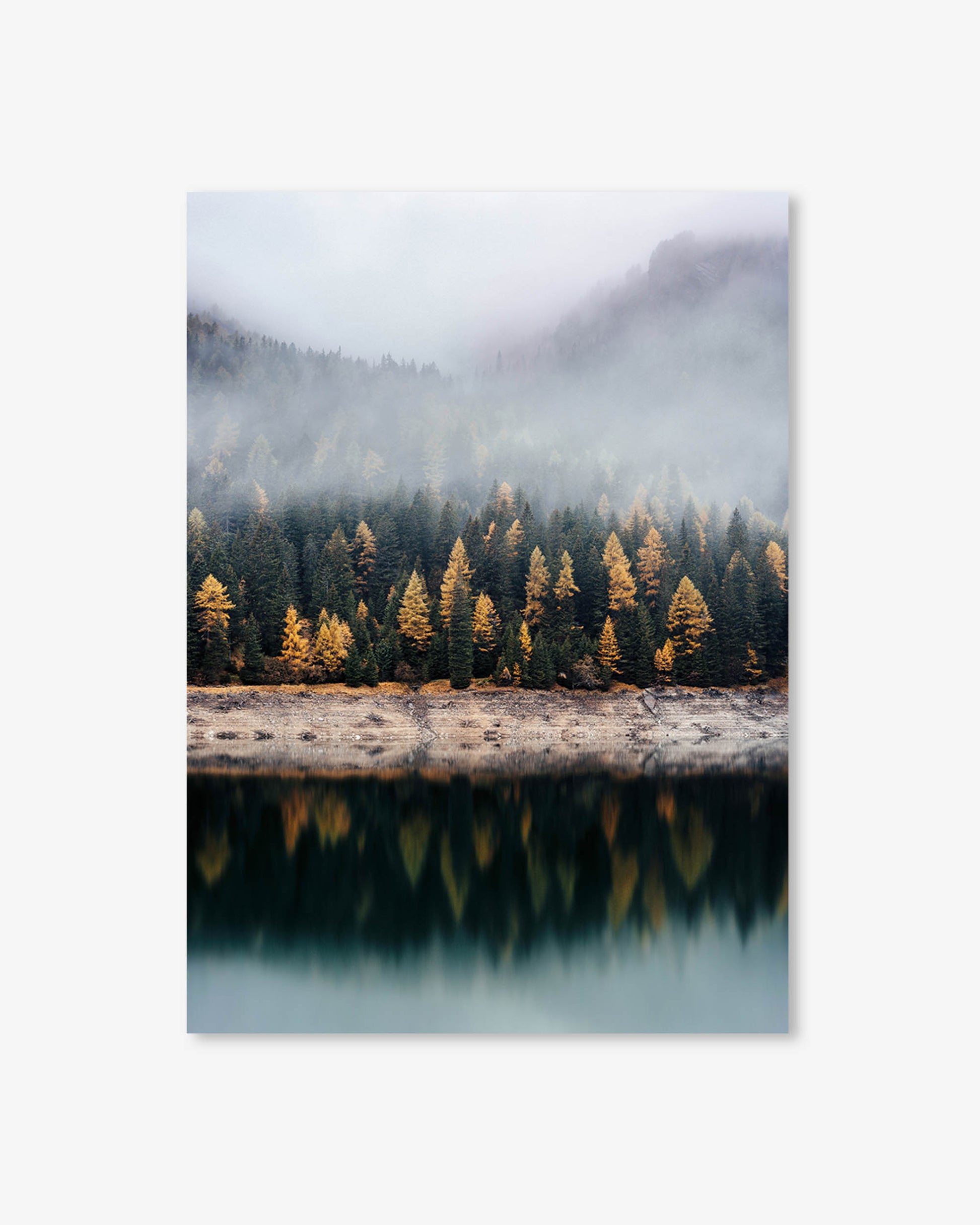 Bring the serene beauty of nature into your home with the Pinecone Forest Wall Art Print. Featuring a misty forest of pinecone-shaped trees overlooking a peaceful lake under a foggy sky, this photograph evokes calm and tranquility. Ideal for creating a soothing atmosphere, it’s the perfect addition for those seeking a moment of quiet reflection in their living space.