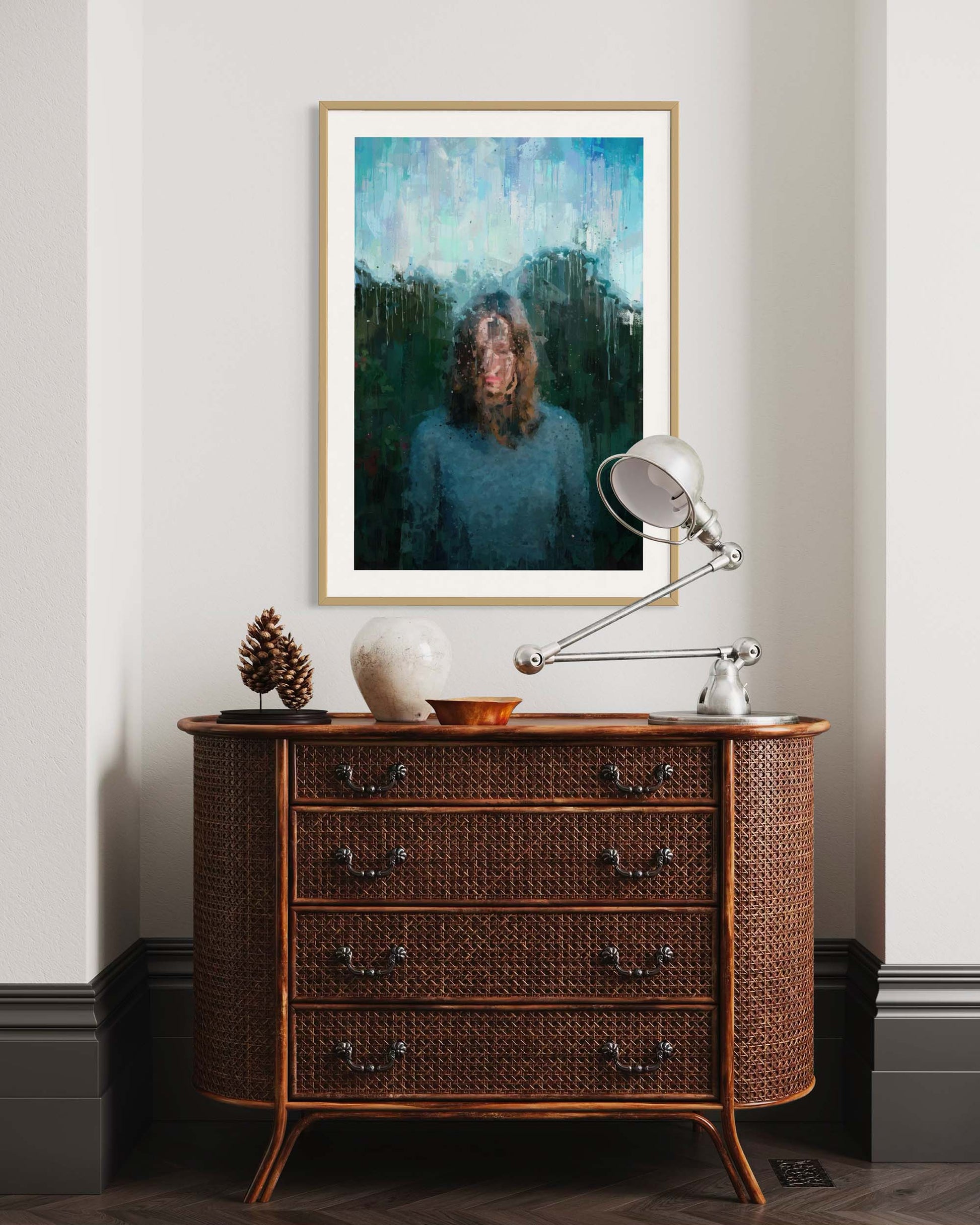Bring elegance and emotion to your space with this Impressionist Portrait of a Girl Art Print. Featuring a woman with long hair framed by soft trees in the foreground, this piece captures a gentle, timeless beauty. The delicate brushwork and subtle colors create an inviting atmosphere, making it an ideal addition to any room seeking warmth and artistic depth. Enhance your décor with this captivating portrait that blends nature and human emotion in a harmonious composition.