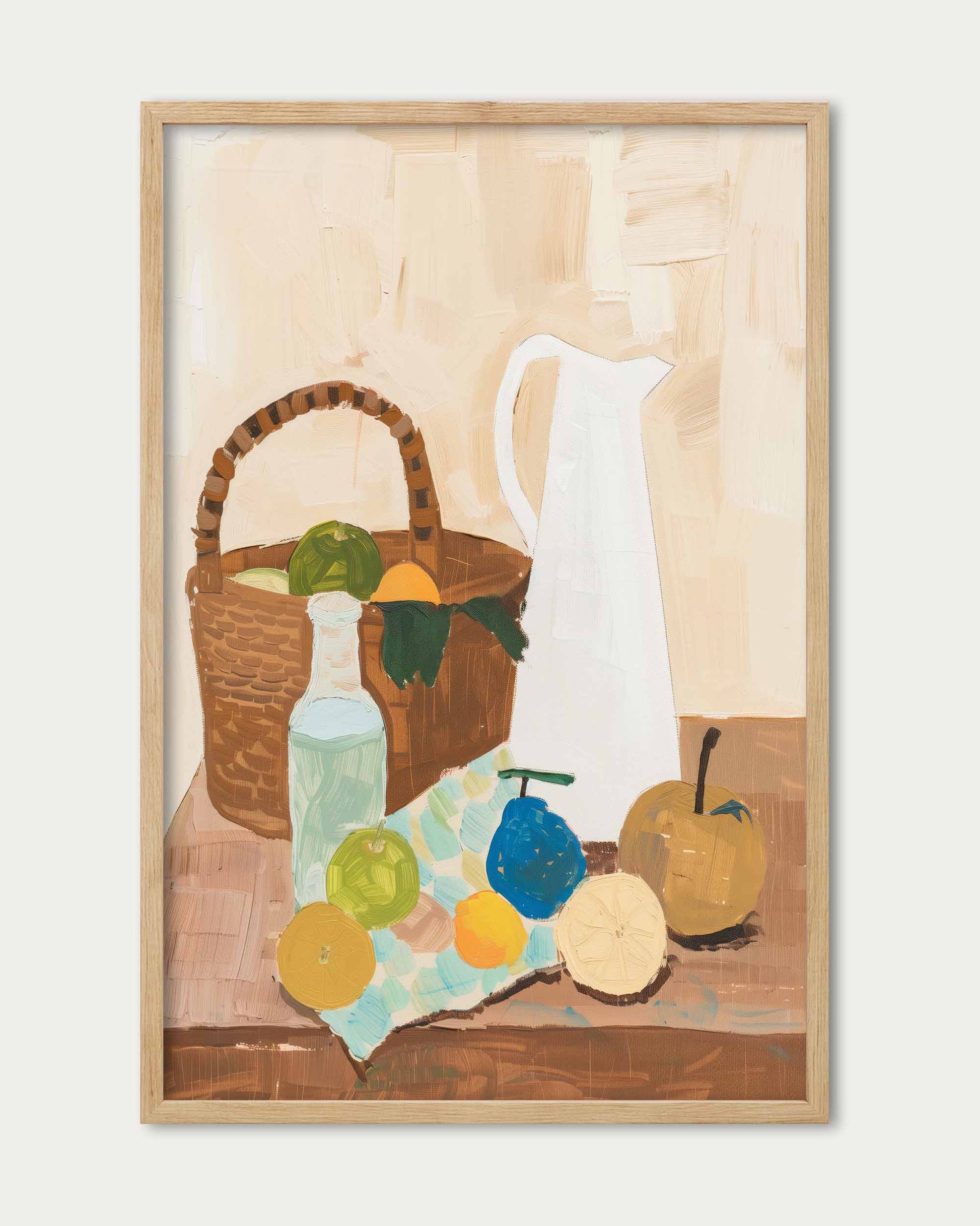 Elevate your space with this exquisite still life print, a masterwork of composition featuring an artfully arranged fruit display in warm, inviting brown and beige hues. Painted with the precision and depth of traditional oil painting, this fine art piece captures the interplay of light and form across textured surfaces and natural forms. The timeless subject matter and sophisticated palette make it an ideal statement piece for discerning collectors who appreciate authentic artistic craftsmanship. Transform any wall into a gallery-worthy focal point with this captivating artwork.