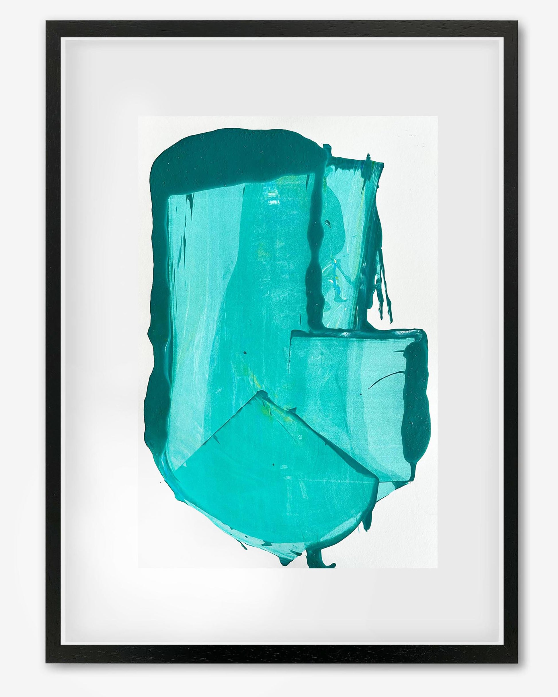 From the new series of 'Expressions' original paintings by London artist, Omar Obaid. This striking modern abstract acrylic painting on card features expressive mark-making created using brushes and a palette knife, adding texture and detail. The rich teal turquoise-green palette creates high impact, bringing the beauty of the ocean indoors.