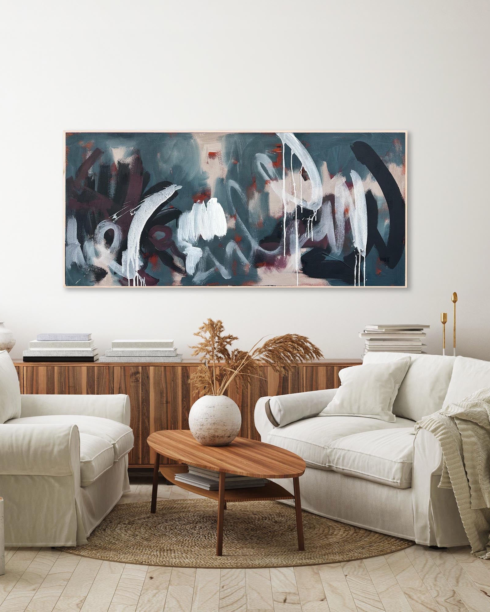 The original artwork is stretched on a wooden frame and it comes ready to hang with your choice of frame colour.