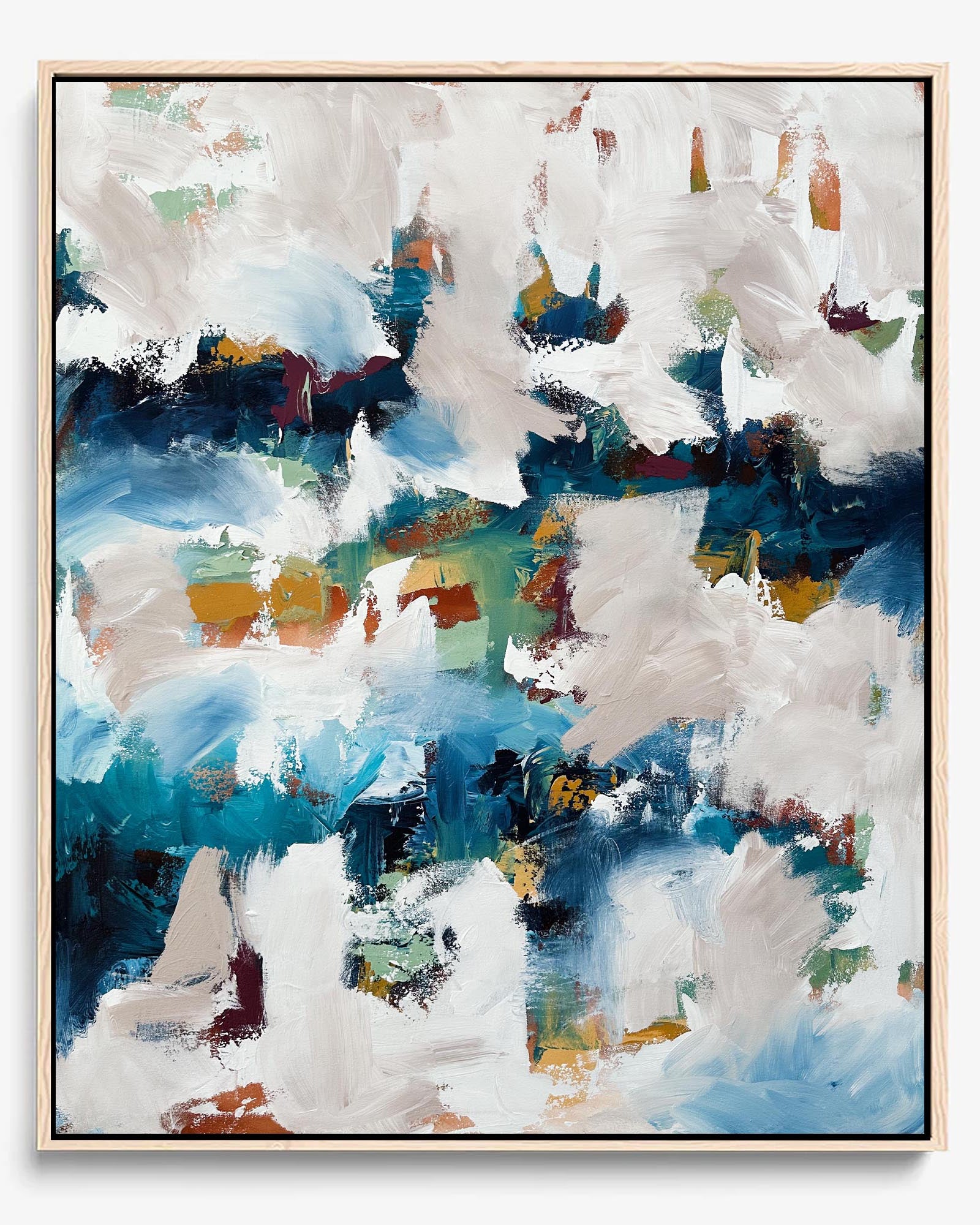 The original artwork is stretched on a wooden frame and it comes ready to hang with your choice of frame colour.