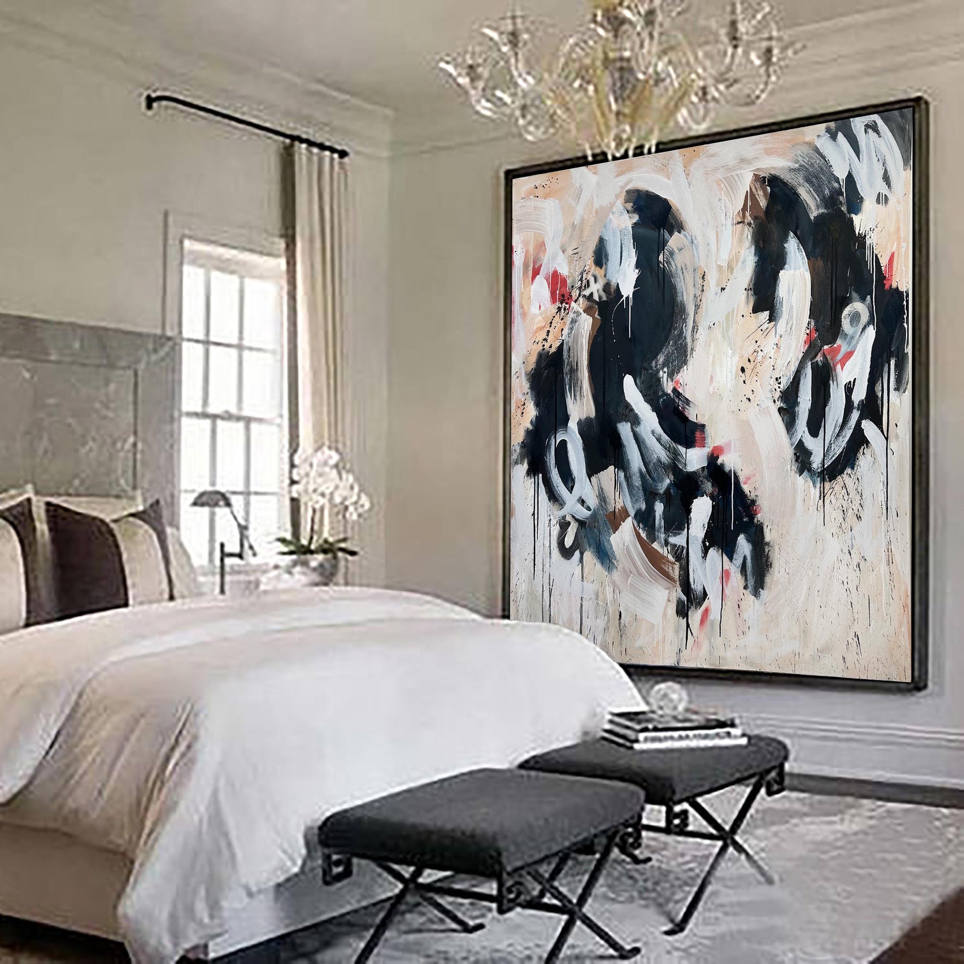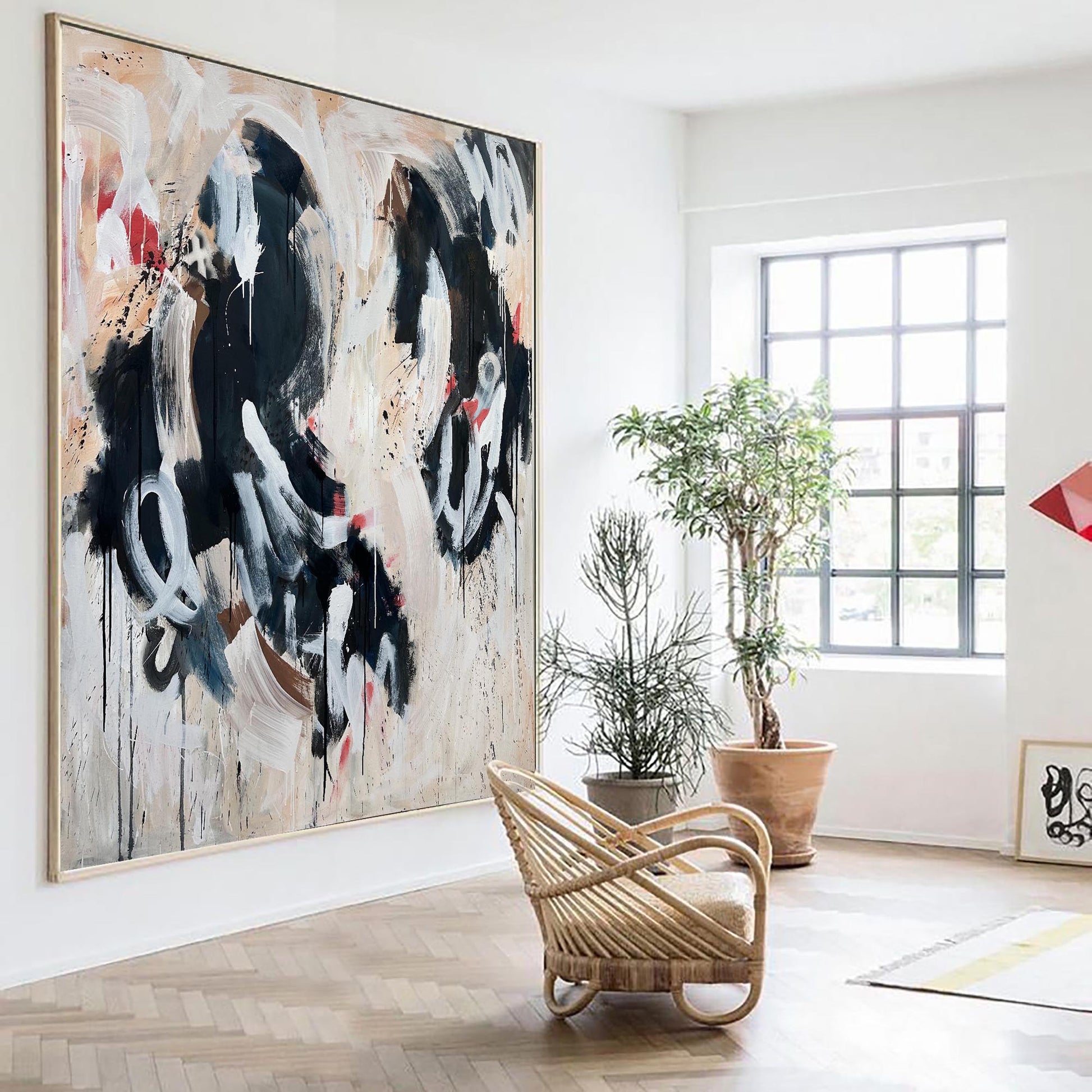 This extra large 200x200cm painting on canvas, created by artist Omar Obaid, is one of his largest masterpieces. The contemporary, abstract composition features multiple layers, adding depth and complexity to the piece. A true work of art for any modern art enthusiast.